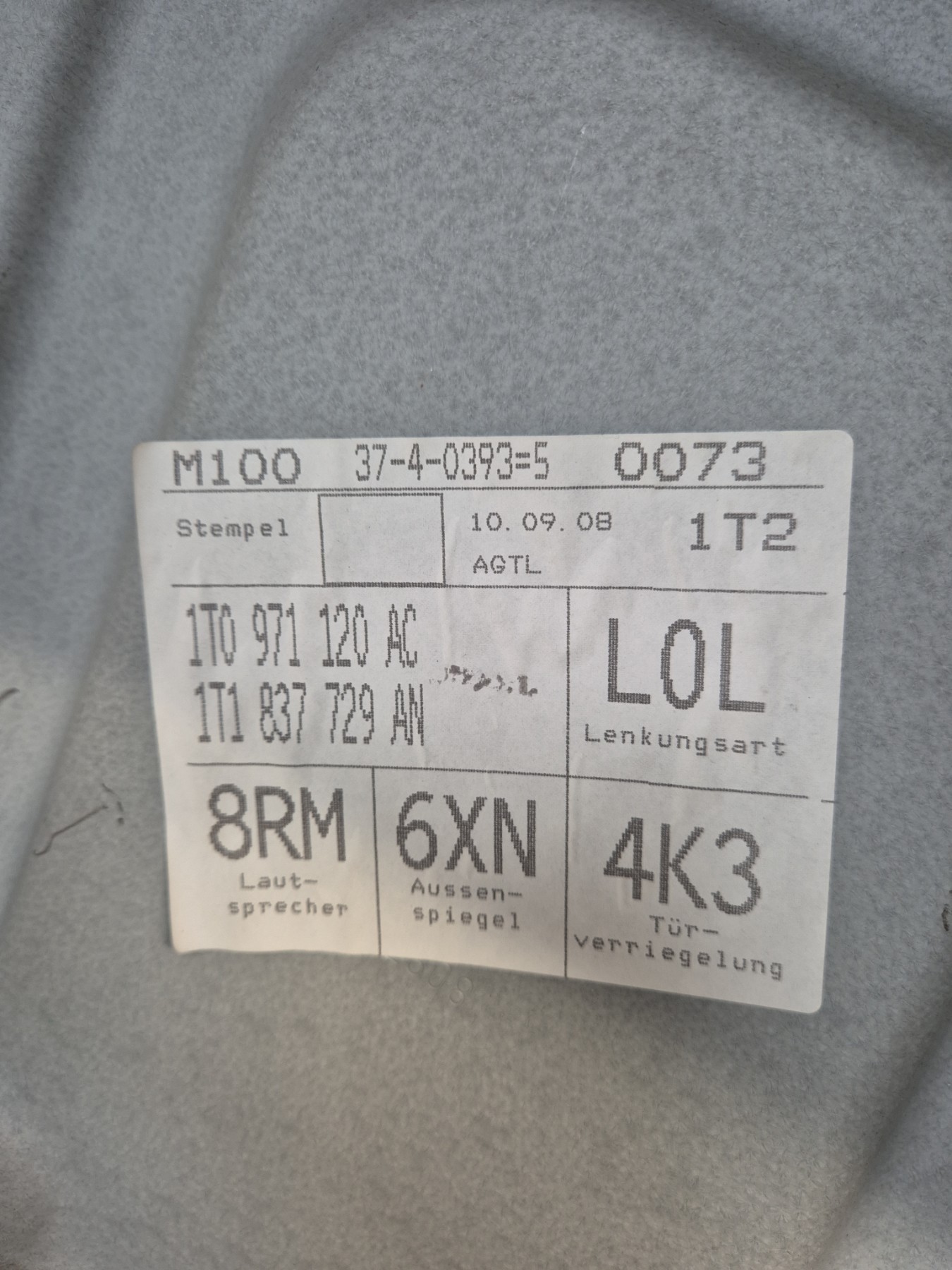 réf. constructeur 1T1837461B