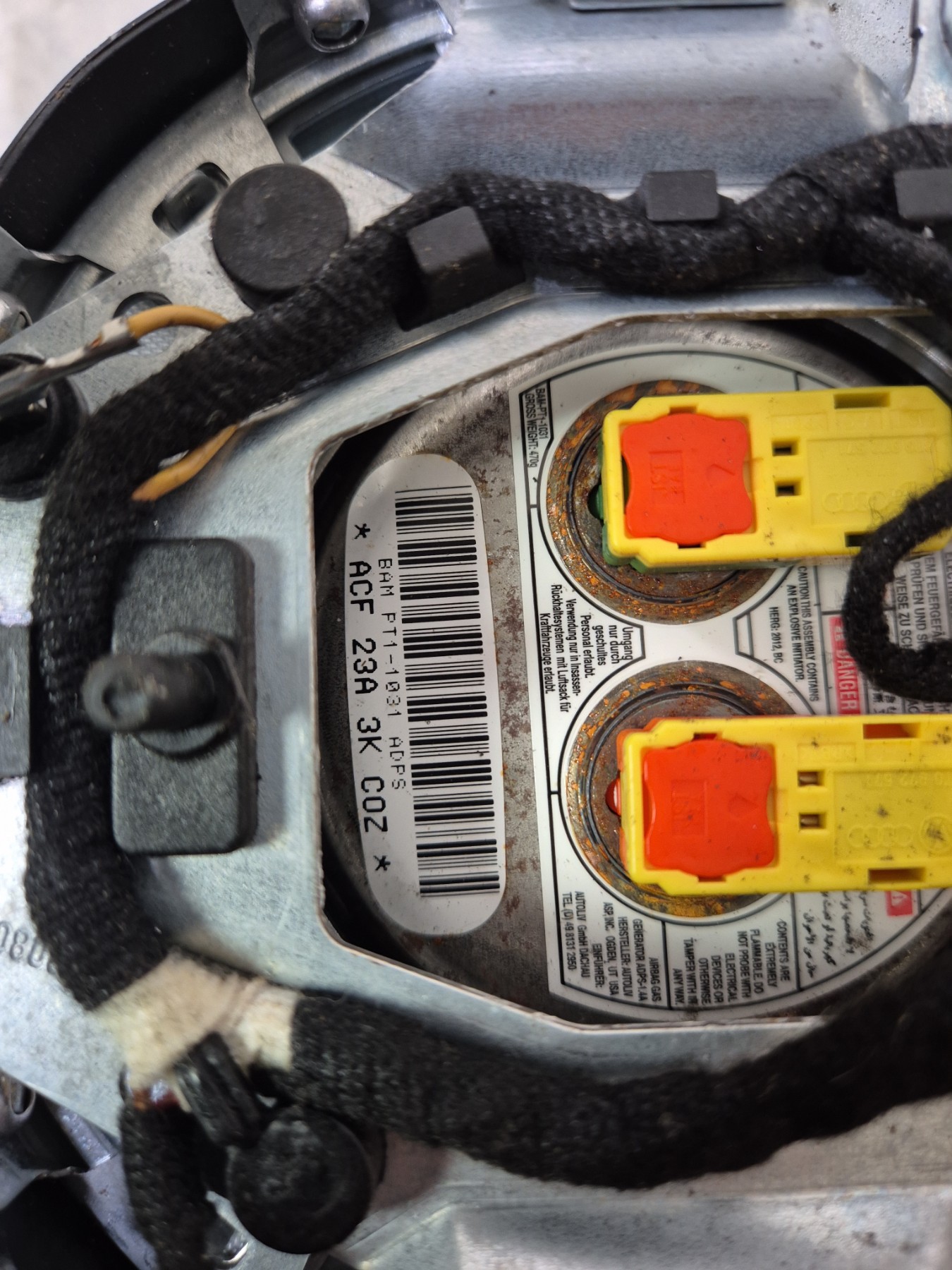 Remarque : Cette pièce peut contenir des composants à déclenchement pyrotechnique ou des systèmes hybrides avec un réservoir à gaz.
