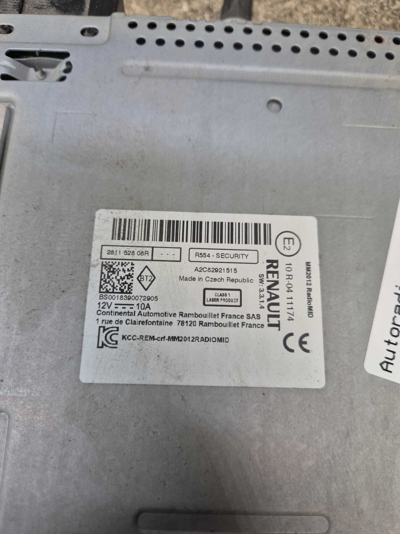 Si un code ou un télécodage est nécessaire pour l'usage de cet autoradio, il appartiendra à l'acquéreur de faire le nécessaire auprès d'un concessionnaire ou du constructeur.