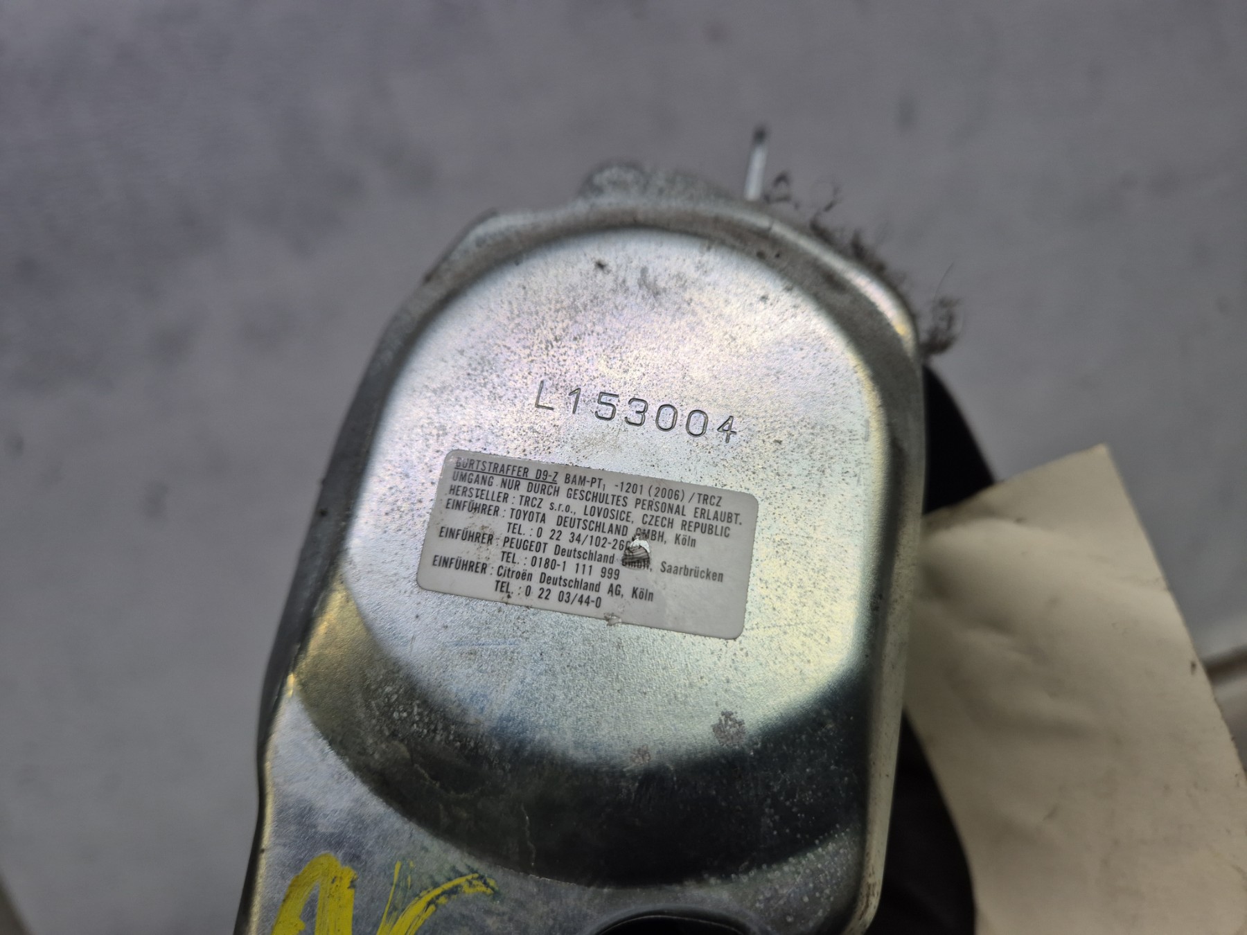 Remarque : Cette pièce peut contenir des composants à déclenchement pyrotechnique ou des systèmes hybrides avec un réservoir à gaz.