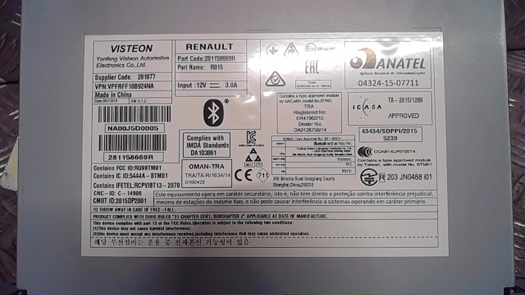 Référence RENAULT : 281158669R