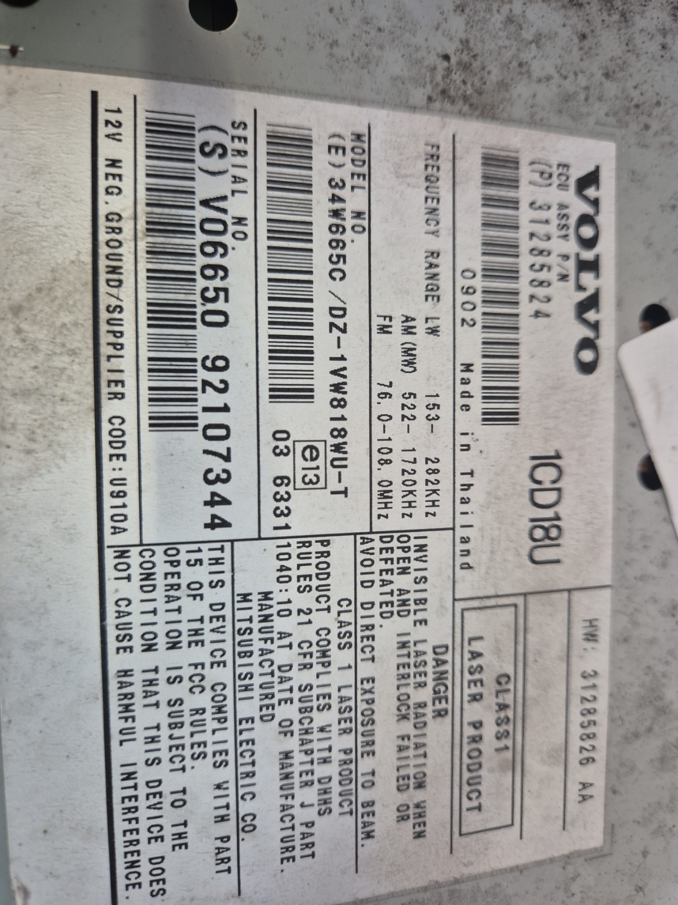 Si un code ou un télécodage est nécessaire pour l'usage de cet autoradio, il appartiendra à l'acquéreur de faire le nécessaire auprès d'un concessionnaire ou du constructeur.